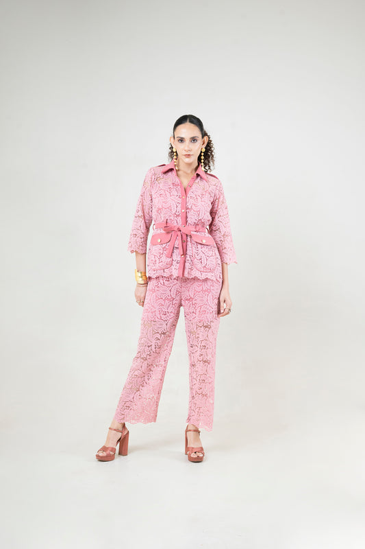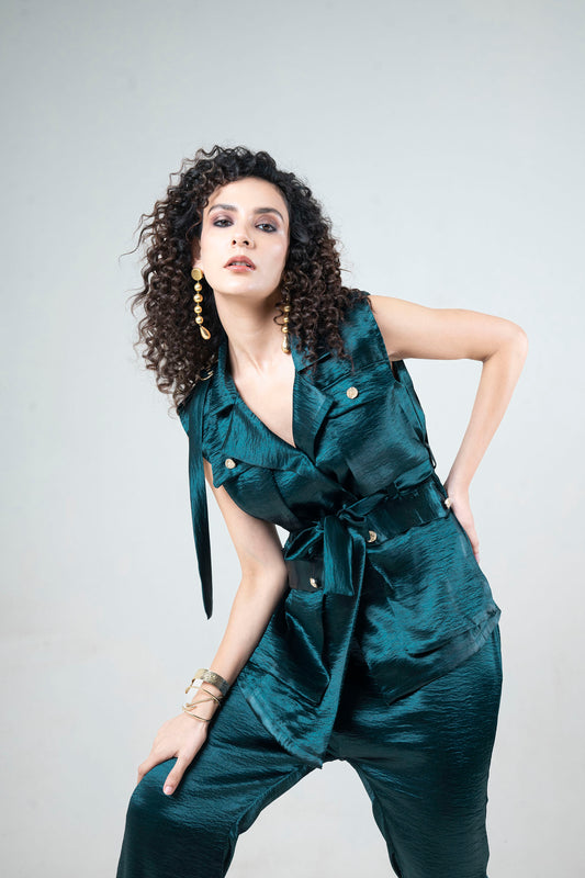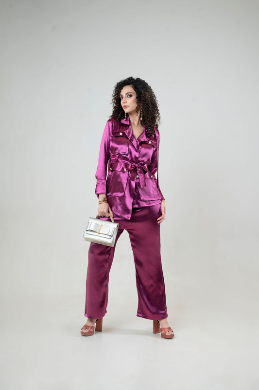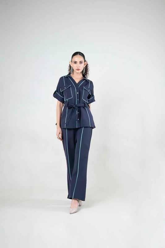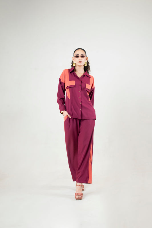 Ruffle Shoulder Co-Ord Set with Contrast Panel Detail