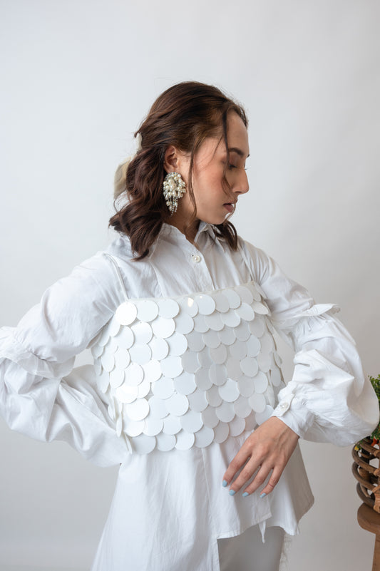 Asymmetric Shirt With White Sequin Bustier