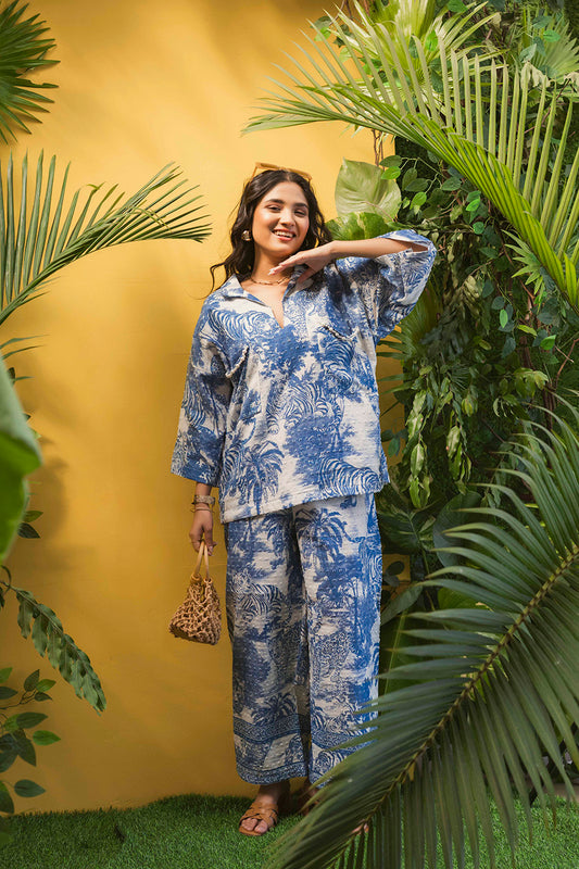 Ruffle Shoulder Co-Ord Set with Contrast Panel Detail