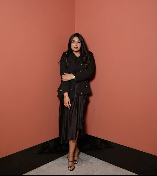 Noor Embellished Peplum Blazer and Skirt Set in Black