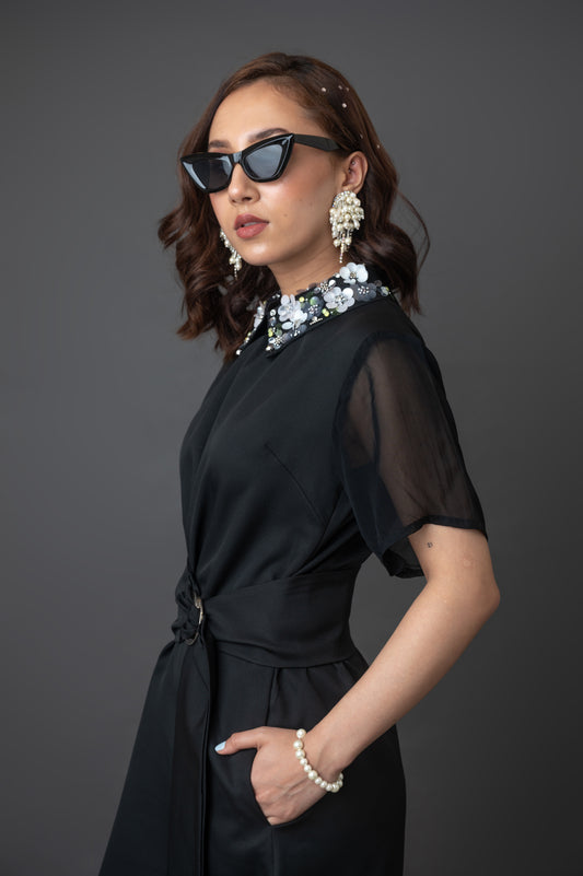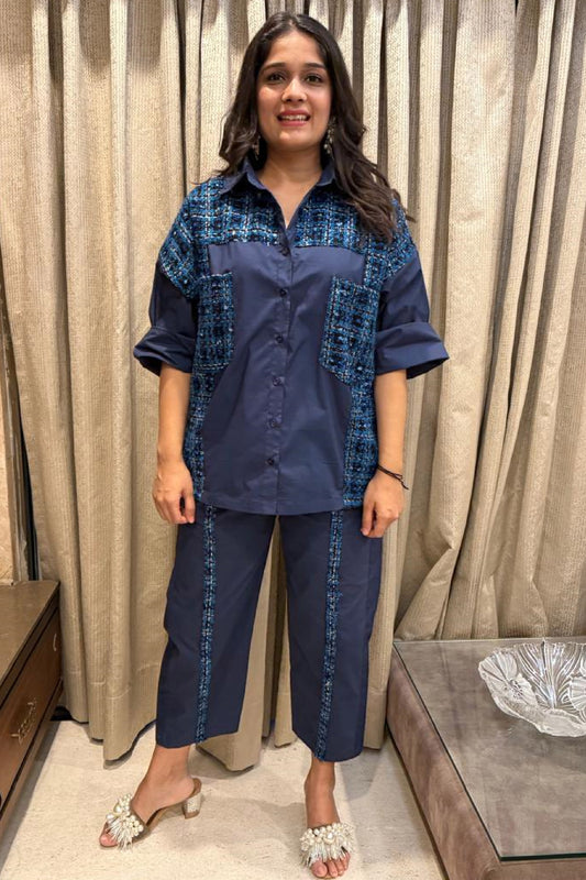 Asymmetric Shirt With Neon Green Sequin Bustier