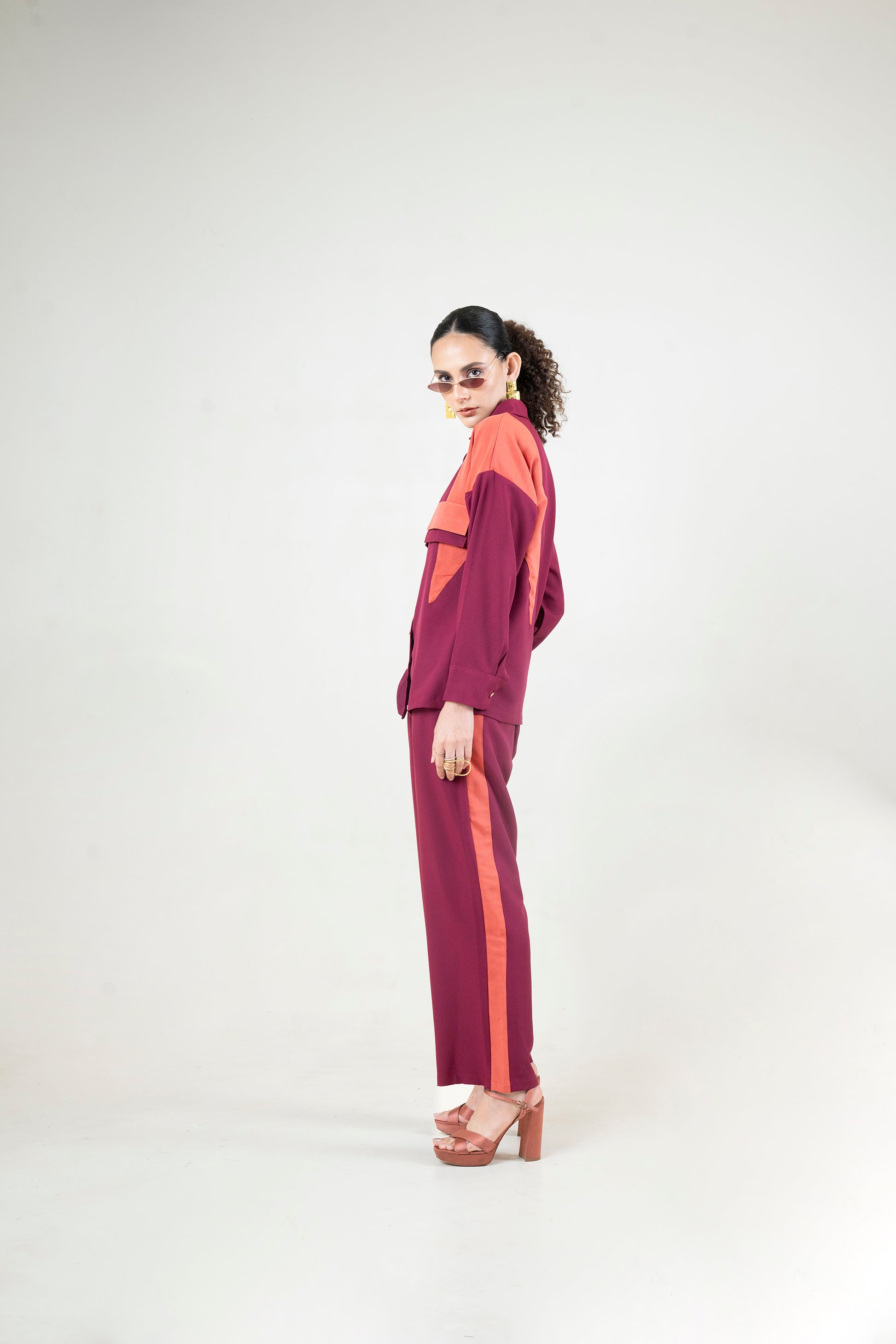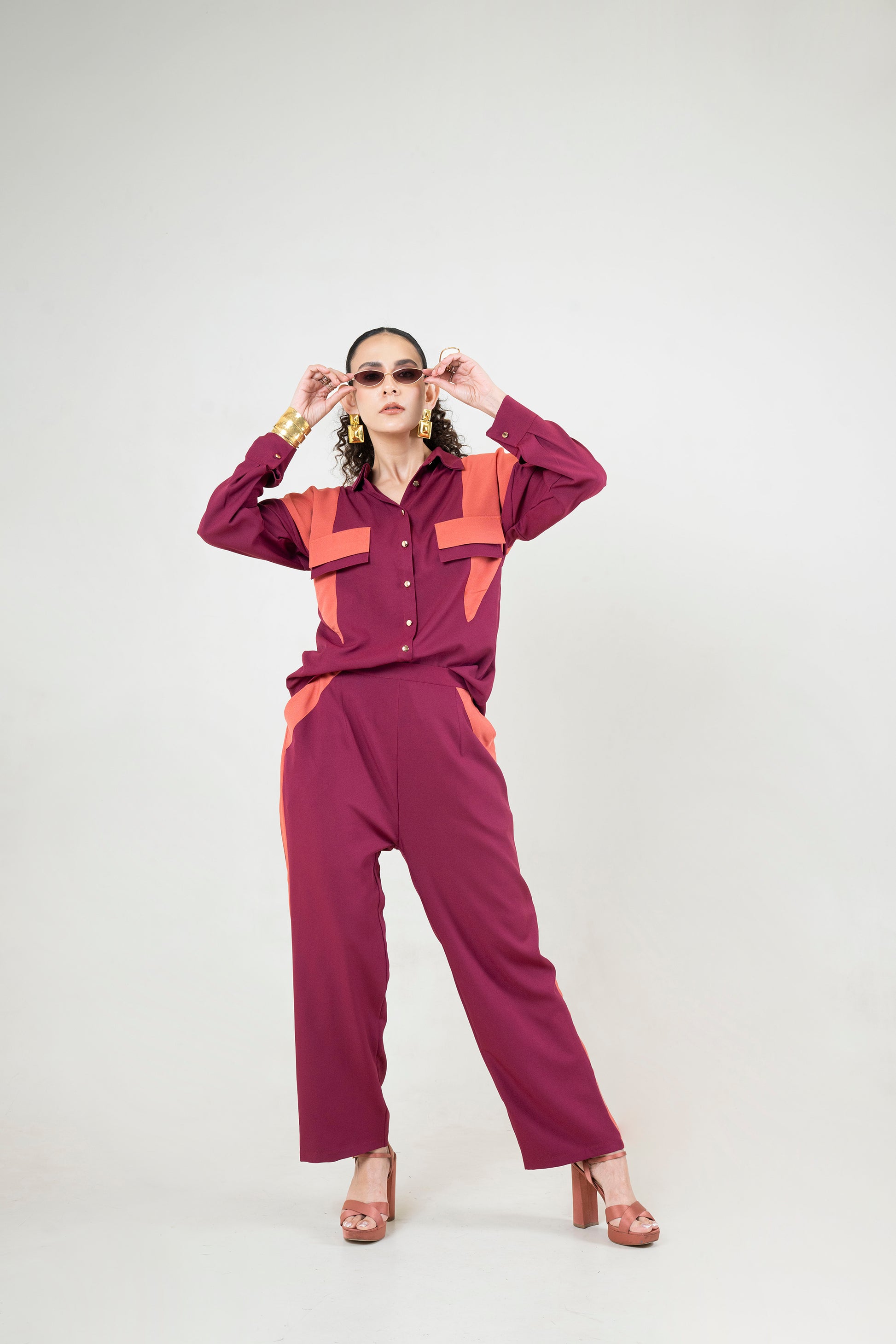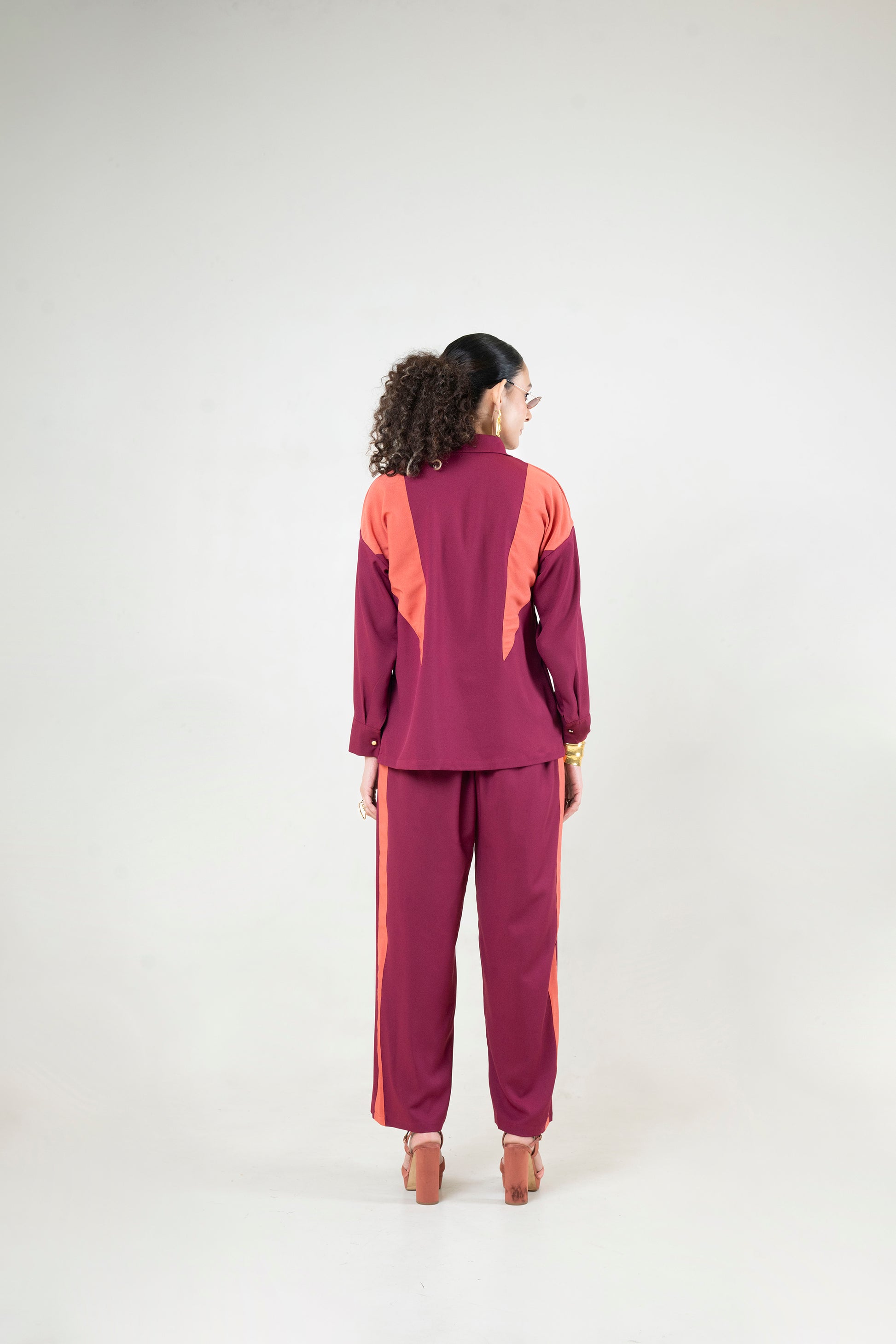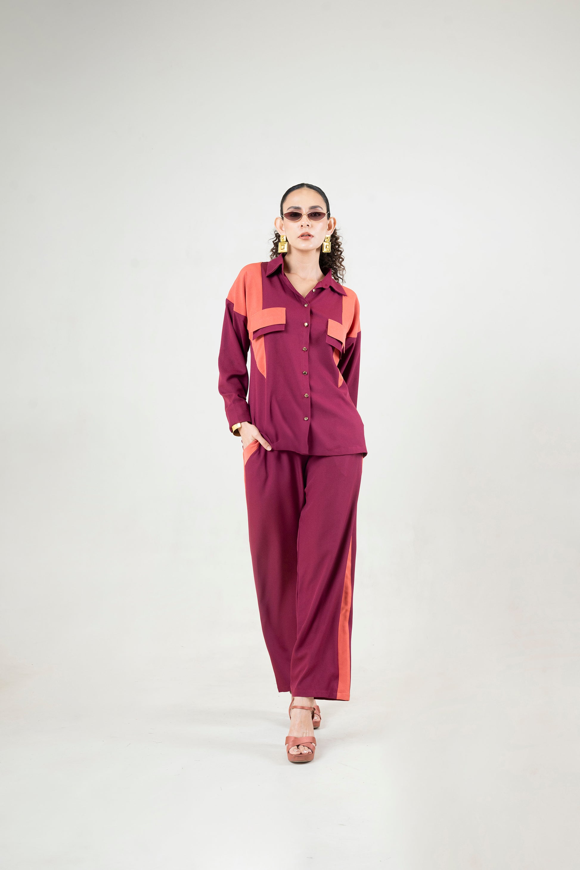 Collared shirt with full sleeves and cuffs featuring contrasting panel details