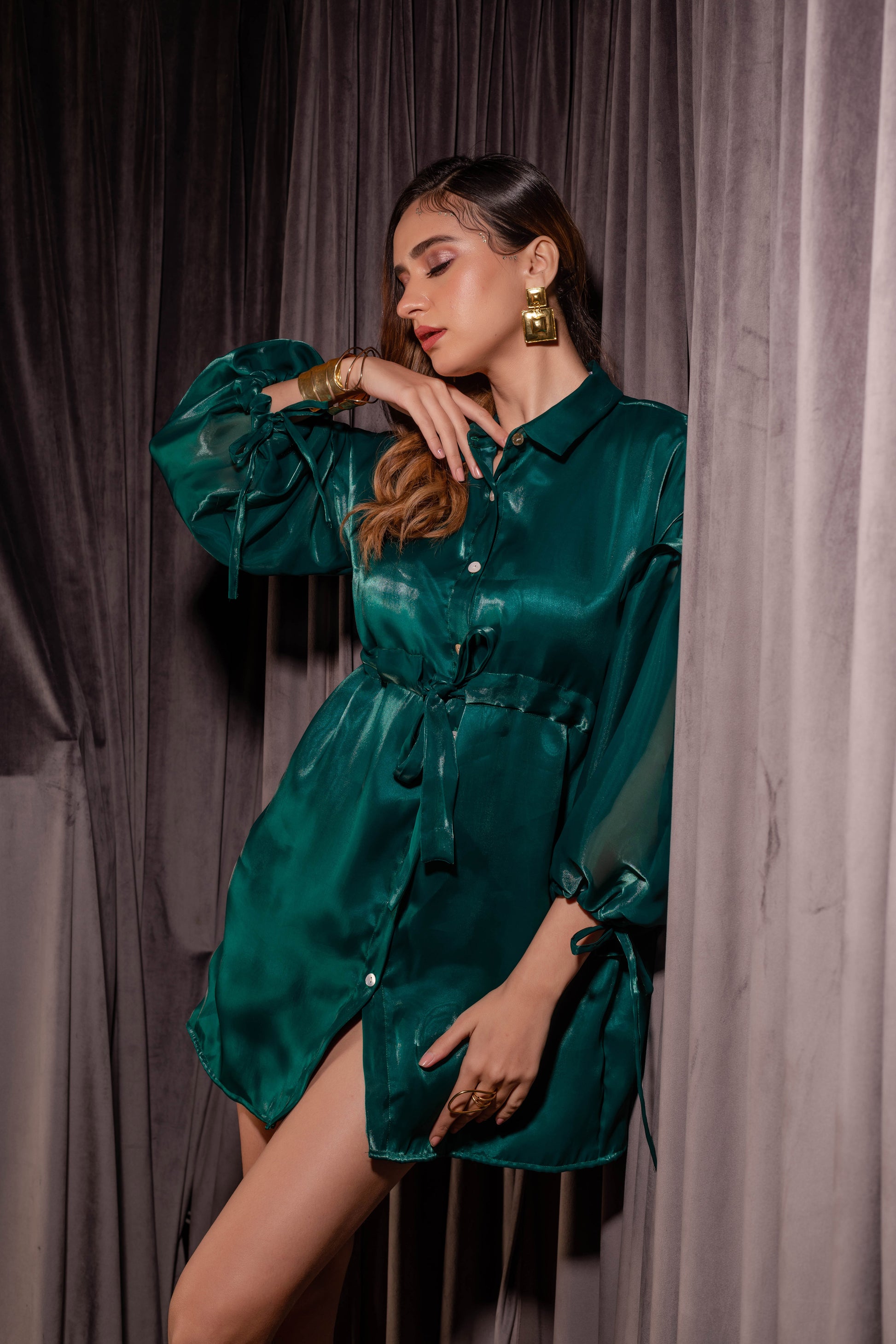 Tie up long cuffed sleeves