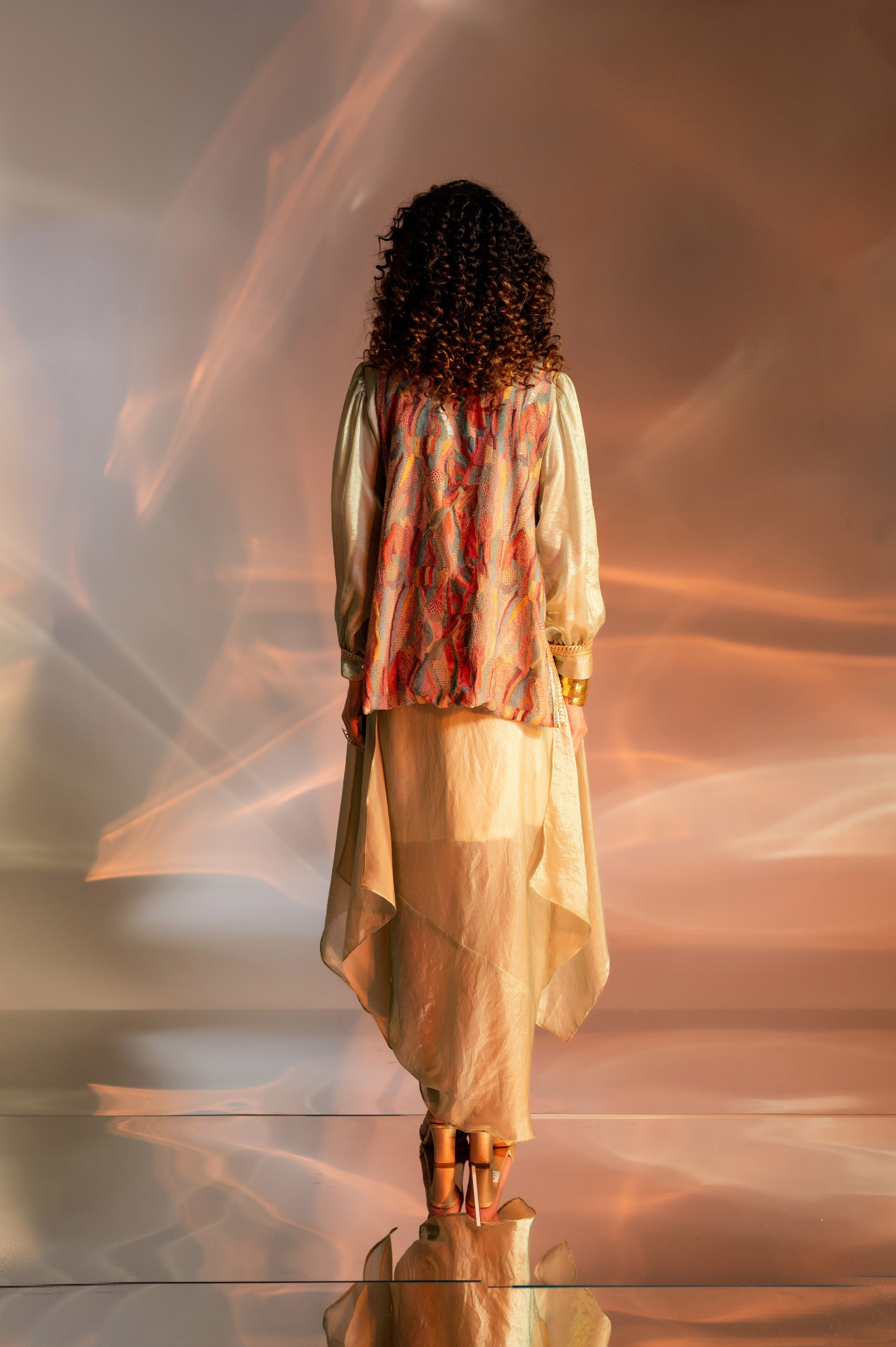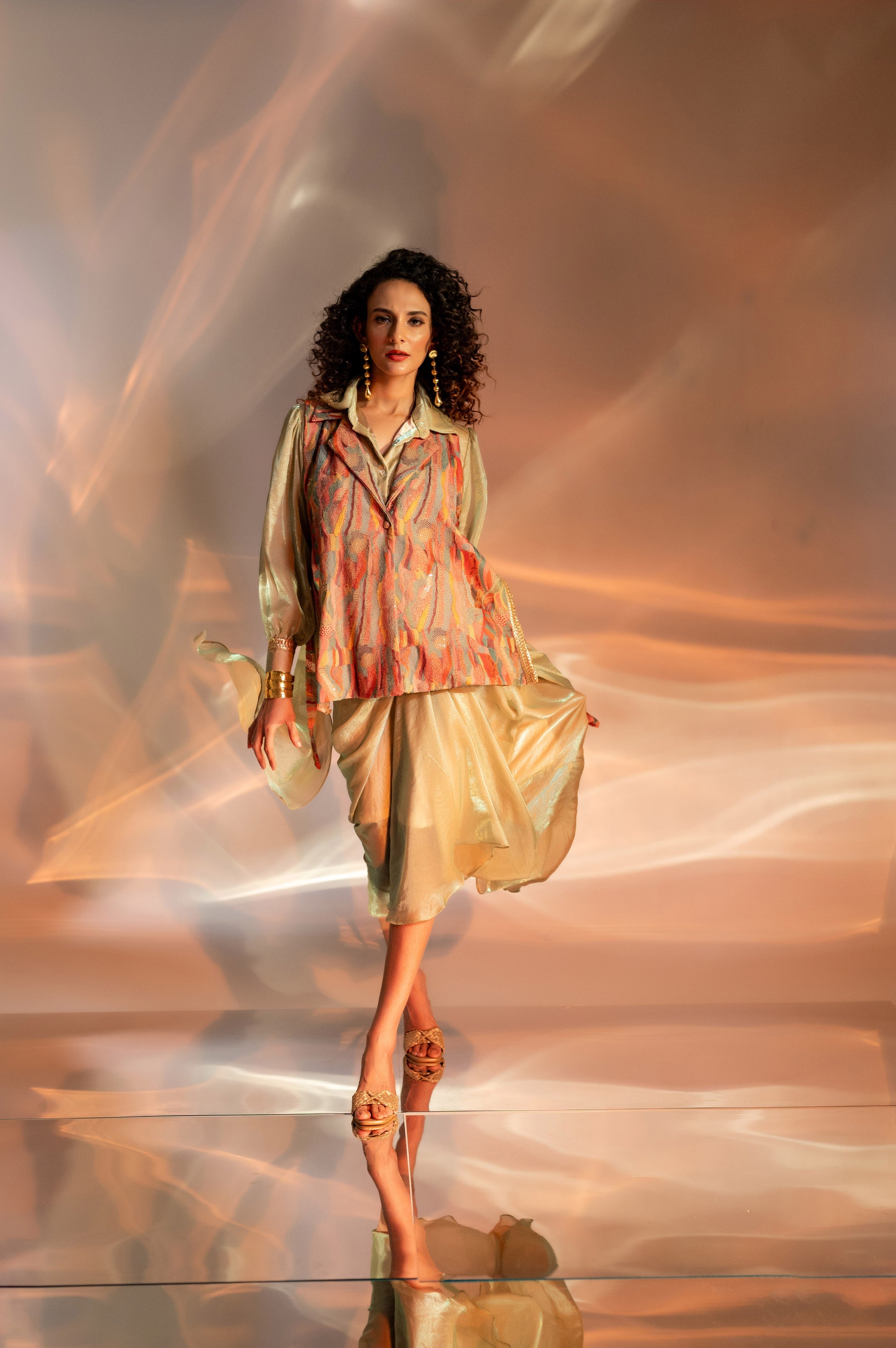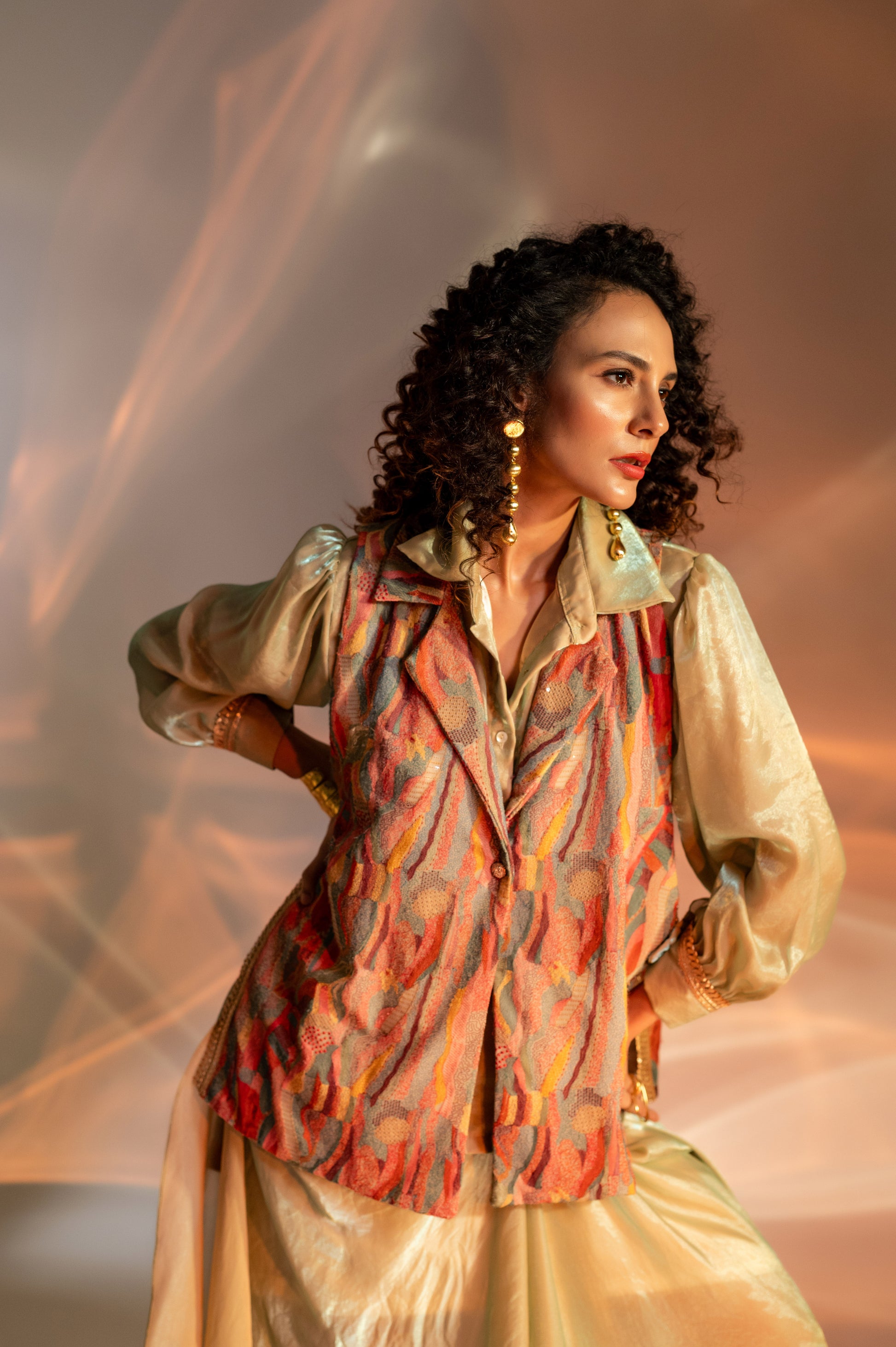 Layla Asymmetric Shirt, Skirt and Embroidered Jacket Set