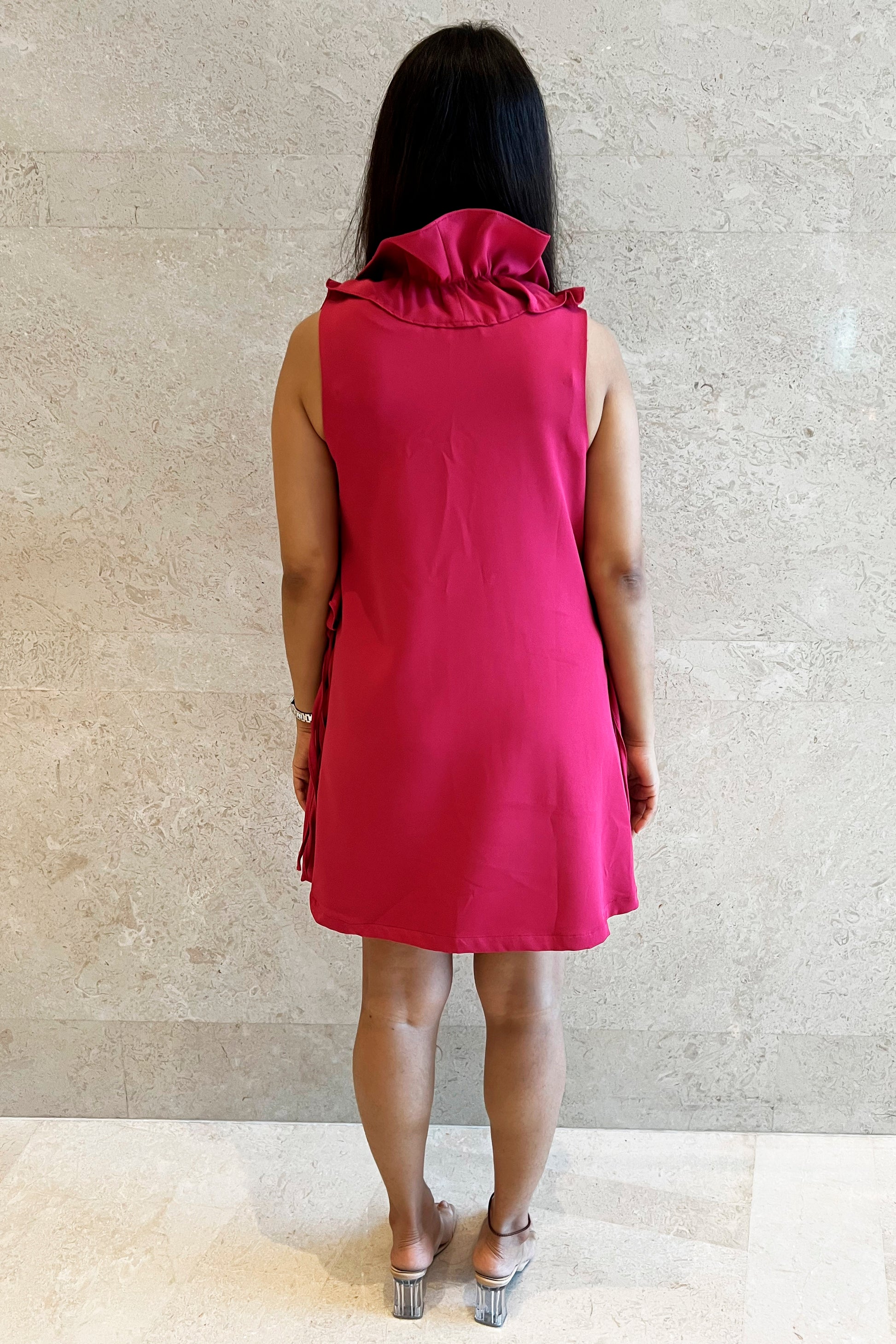 Ruffles around the neck till the waist