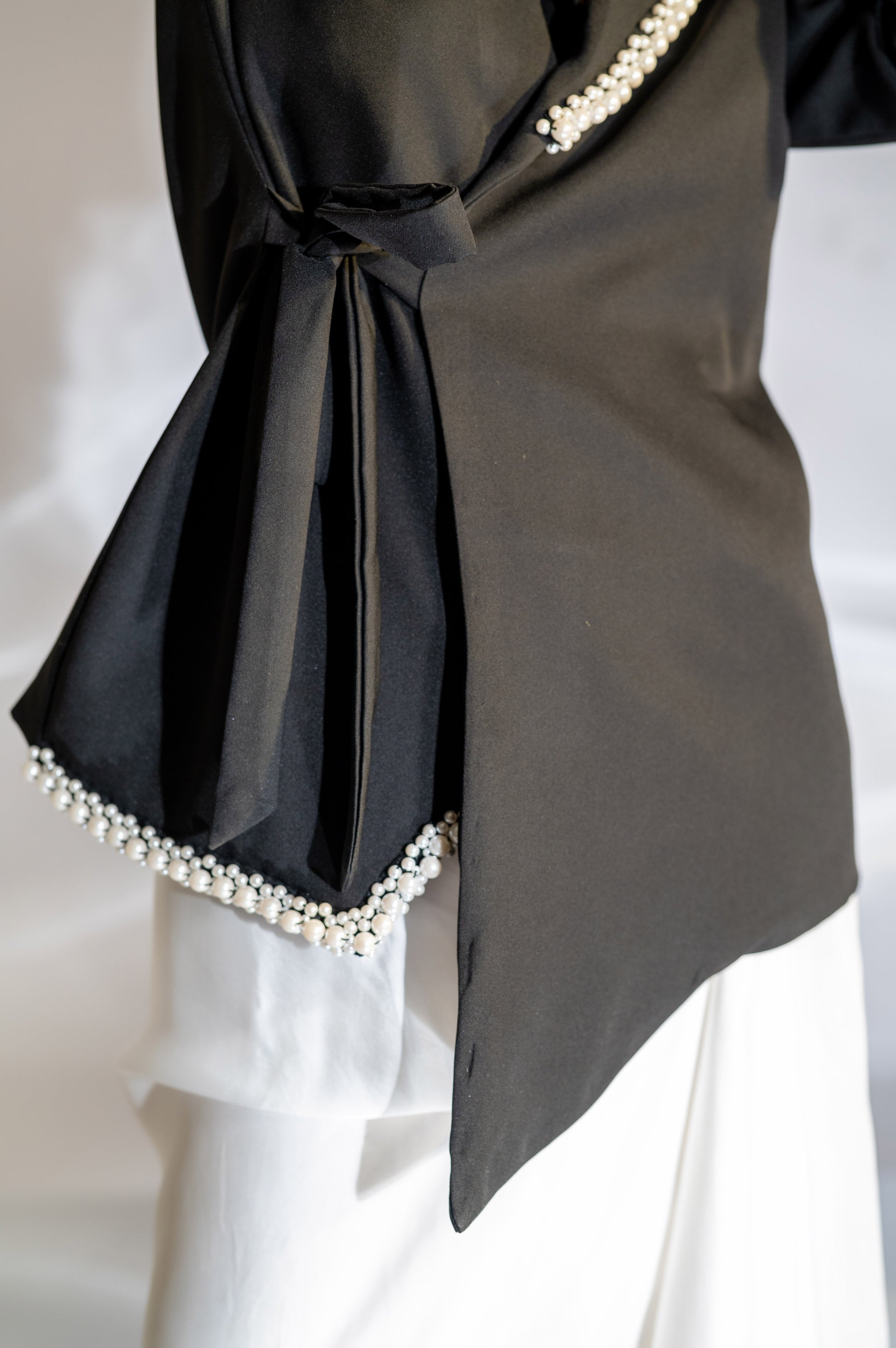 Pearl Embellished Waist Tie Blazer and Skirt Set